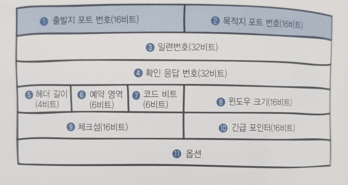 - 일련번호(sequence number) : TCP에서는 데이터를 보낼 때마다 각 데이터에 고유한 번호를 부여해서 전송을 시도한다. 이 번호를 이용하여 TCP 패킷의 순서를 제어할 수 있다.