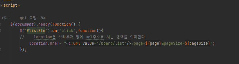 ②-1. 목록 버튼을 누르면 삭제 알람이 떠서 board.jsp로 이동하여 코드를 확인했습니다.