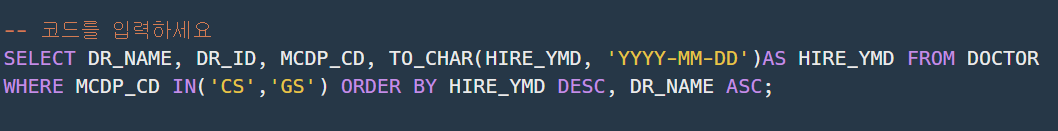 2.HIRE_YMD 날짜 포맷을 전혀 고려치않음.