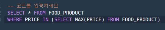 [프로그래머스]LV2.가격이 제일 비싼 식품의 정보 출력하기