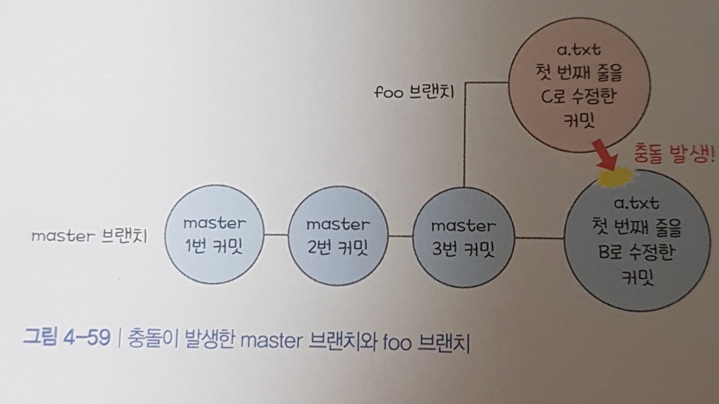 ●충돌: 병합하려는 두 브랜치가 서로 같은 내용을 다르게 수정한 상황