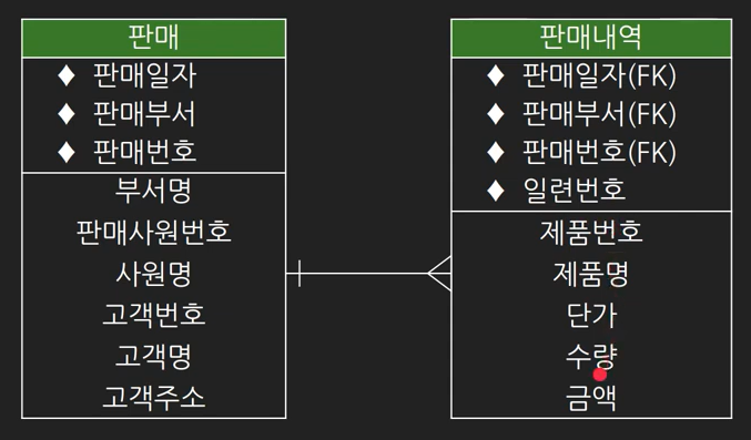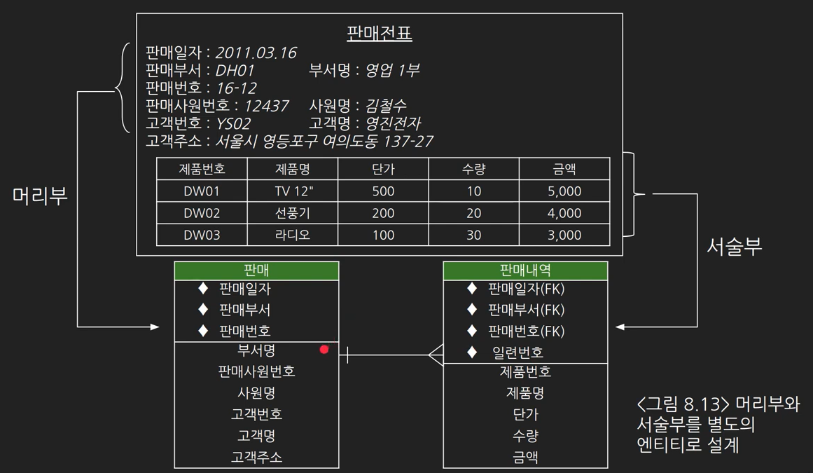 2.1 장부나 전표에서 머리부(header)와 서술부(detail)는 별도의 엔티티에 저장한다.