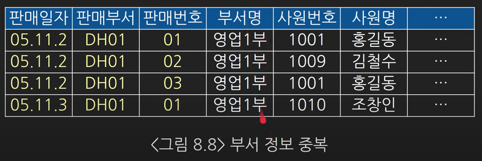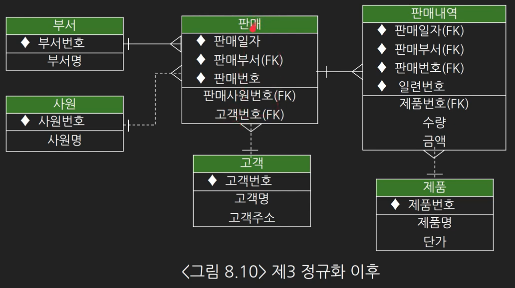 - ERD내에서 중복요소를 찾아내 제거하는 과정