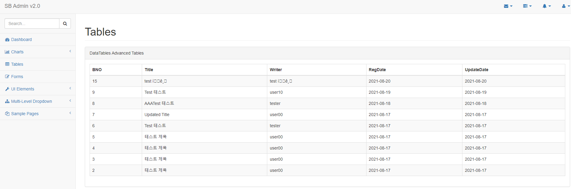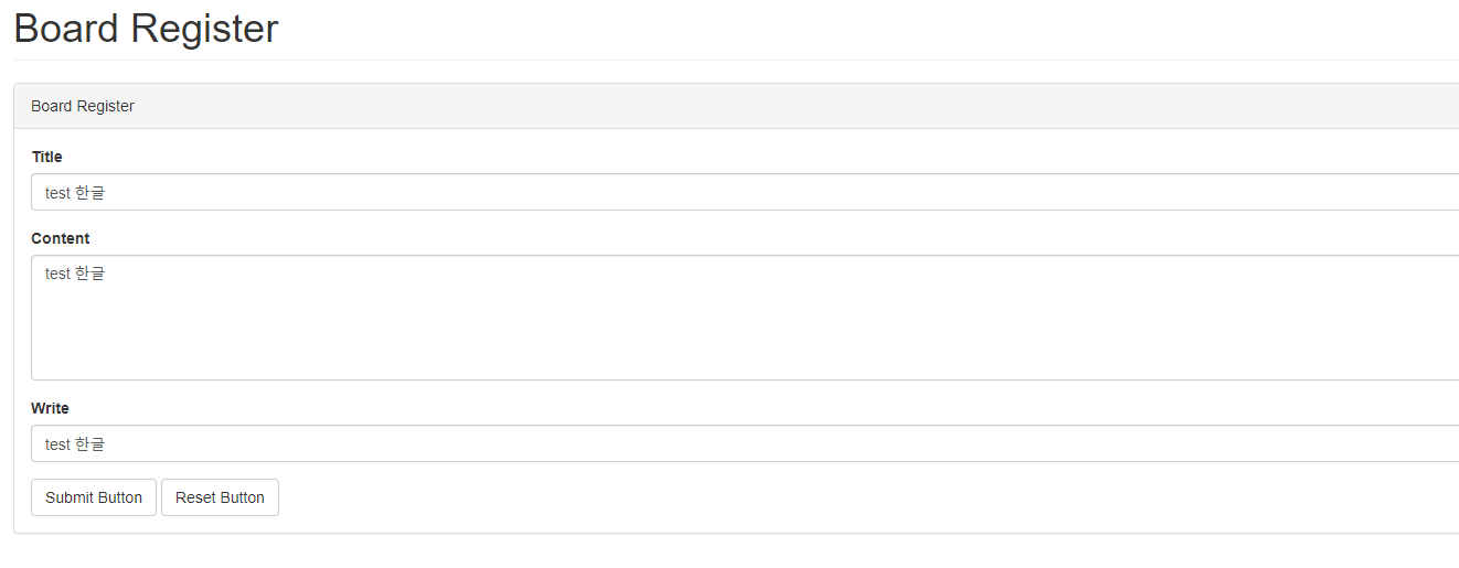 INFO : org.zerock.controller.BoardController - board: BoardVO(bno=null, title=test íê¸, content=test íê¸, writer=null, regdate=null, updateDate=null)