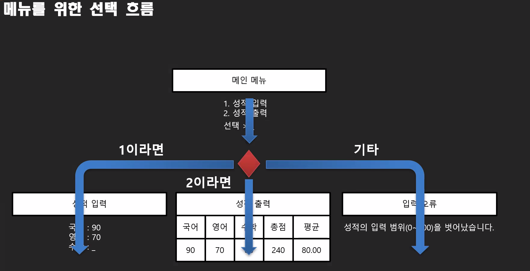 메뉴는 무조건 switch 제어구조를 떠올려라.