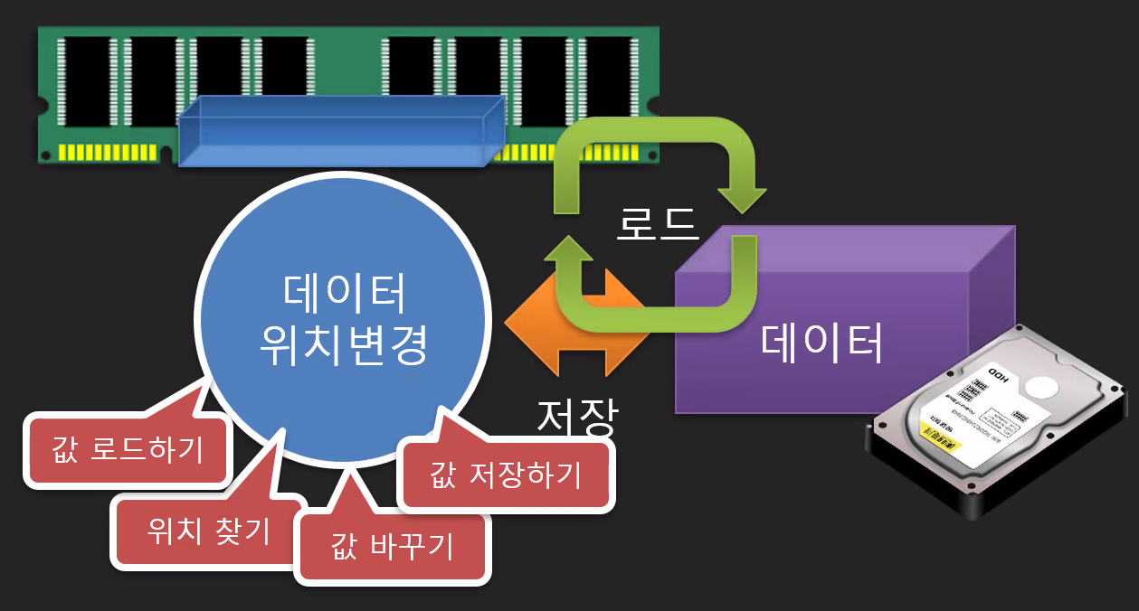 값 로드하기 -> 위치찾기 -> 값 바꾸기 -> 값 저장하기