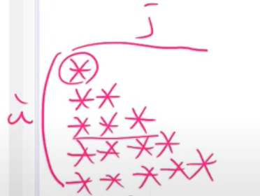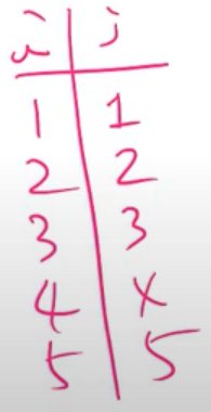 열(j)의 값을 행(i)값이 따라가는 걸 알 수 있다. 그렇다면 앞서 활용한 중첩의 for문을 참조하여 아래와 같은 식으로 나타낼 수 있다.