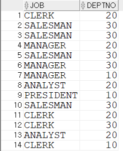 열이 한 개일 경우 해당 열의 중복을 제거하고자 위와 같은 문법을 사용했다. 30,20,10은 중복되는 데이터인데, DISTINCT 덕분에 각각 한번 씩만 출력되고 있다.