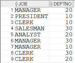 열이 한 개일 경우 해당 열의 중복을 제거하고자 위와 같은 문법을 사용했다. 30,20,10은 중복되는 데이터인데, DISTINCT 덕분에 각각 한번 씩만 출력되고 있다.