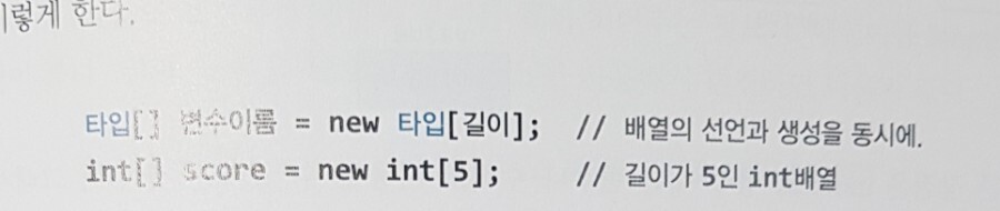 배열의 선언과 생성을 위의 사진과 같이 한꺼번에 표현 할 수 있다.