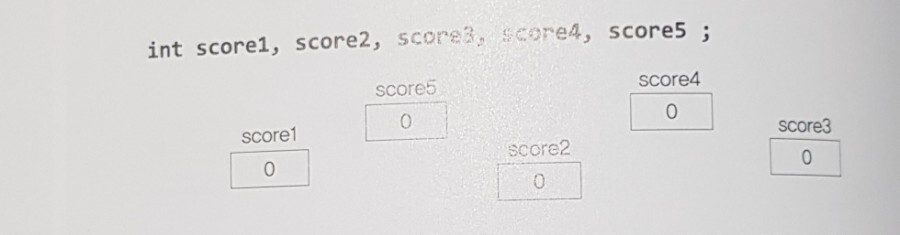 배열은 같은 타입의 여러 변수를 하나의 묶음으로 다루는 것이다. 만약 한 학급의 시험점수를 저장하고자 한다면 다음과 같은 5개의 변수를 선언 해야한다.