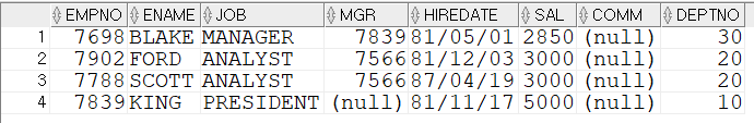 WHERE (DEPTNO, SAL) IN (SELECT DEPTNO, MAX(SAL)