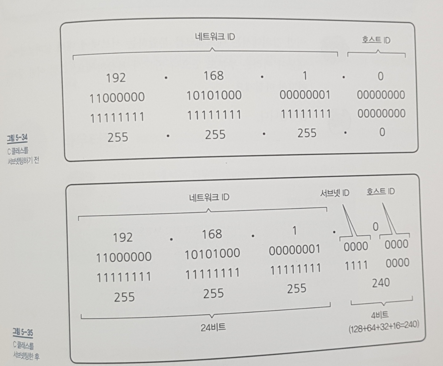- 서브넷팅(subneting): 네트워크를 분할하기 위해 IP 주소의 구성을 변경하는 작업.