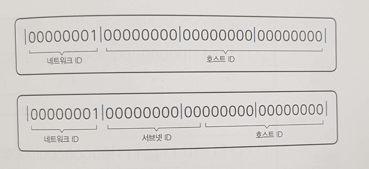 - 서브넷 ID: IP 주소의 네트워크 부분을 늘리기 위해 서브넷 마스크로 사용되는 비트로 서브넷 비트(subnet bits)라고도 한다.