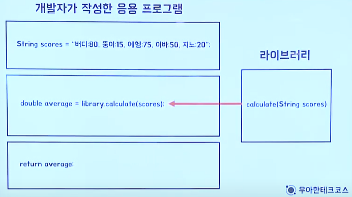 ex.학생들의 시험점수 평균을 내는 프로그램을 만들고자한다. 그런데 X라이브러리는 평균을 구해주는 기능을 가지고 있다. 그래서 굳이 평균을 구하는 기능은 구하지 않고 단지 X라이브러리에서 끌어다가 쓰면 개발을 보다 쉽게 할 수 있다.