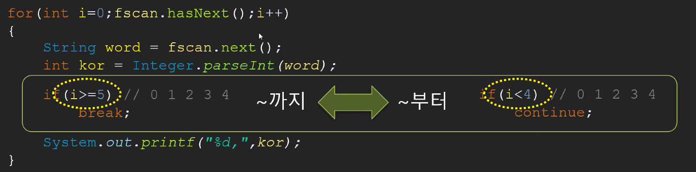 for(int count=0; fscan.hasNext();) { // 카운트 변수를 선언해서 상태변화를 표시했다.