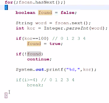 found의 값이 계속 false다. found의 true/false값을 이용해 코드를 진행하려는데 만약 for문안에 변수를 쓰면 값을 변화시킬 수 없다.
