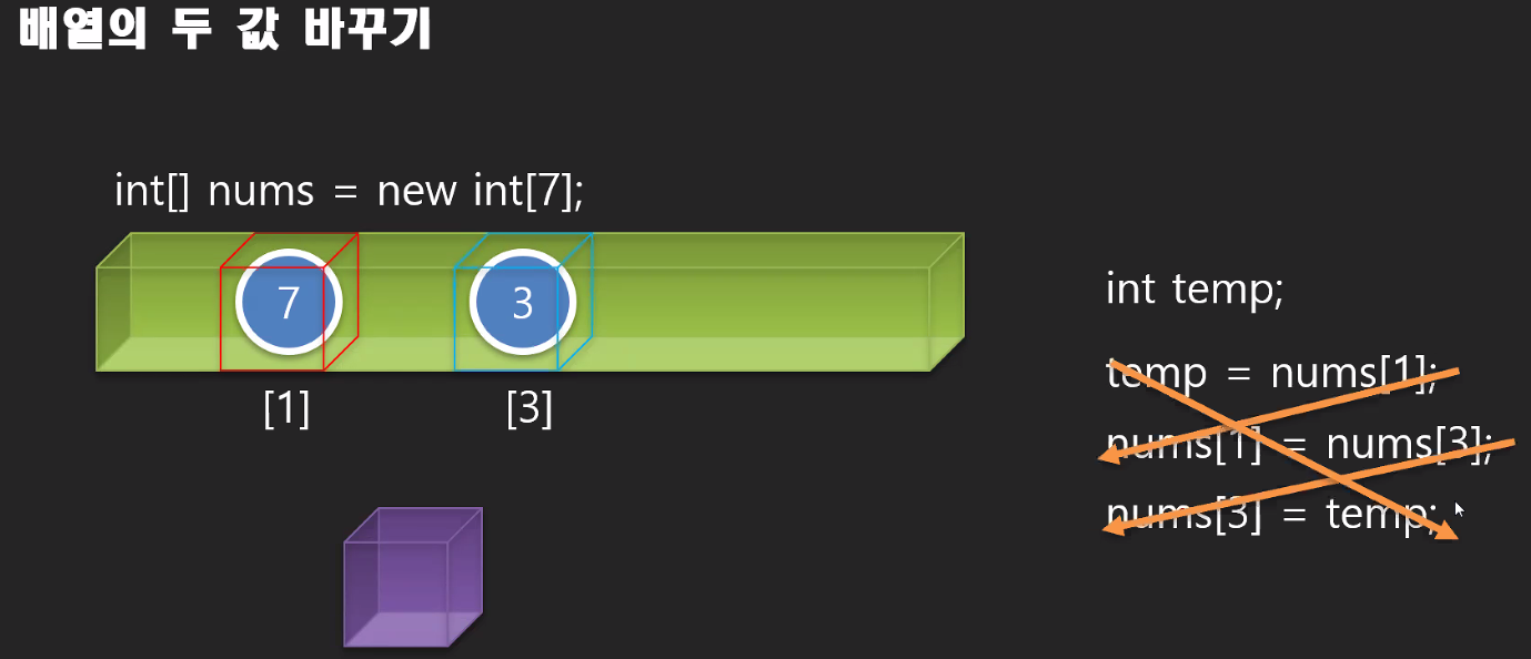 * 배열에서 두 위치의 값 바꾸기